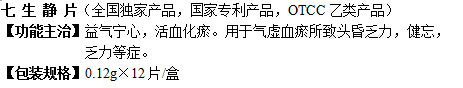 七 生 靜 片(全國獨(dú)家產(chǎn)品,國家專利產(chǎn)品,OTCC乙類產(chǎn)品)