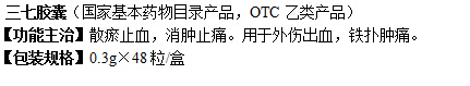 三 七 膠 囊(國(guó)家基本藥物目錄產(chǎn)品,OTC乙類產(chǎn)品)
