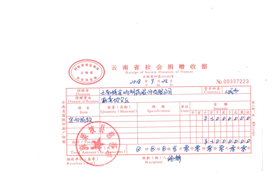 2018年9月2日凌晨,文山州麻栗坡縣境內(nèi)遭受強(qiáng)降雨襲擊,受災(zāi)極為嚴(yán)重,截至9月3日9時(shí),災(zāi)情已造成全縣12個村委會50個村小組4100余人受災(zāi)。特別是猛硐鄉(xiāng)遭受特大山洪泥石流災(zāi)害造成多處山體垮塌,道路交通、網(wǎng)絡(luò)通訊、電力全部中斷,猛硐鄉(xiāng)因?yàn)?zāi)死亡5人、失聯(lián)15人、受傷7人,據(jù)初步統(tǒng)計(jì),災(zāi)情造成全鄉(xiāng)經(jīng)濟(jì)損失14億元以上。災(zāi)情發(fā)生后,文山州政府、州紅十字會向全社會發(fā)出為麻栗坡縣猛硐鄉(xiāng)捐款的倡議,我公司經(jīng)營班子及時(shí)向董事會及上級公司請示同意,2018年9月5日,組織員工捐款10440元,公司捐款30000元,共計(jì)40440元,這筆善款代表著特安吶人的一份愛心、一份責(zé)任,為災(zāi)區(qū)盡一份綿薄之力。特安吶源自古希臘神話傳說,有一位以普渡眾生為己任的月亮女神,她不僅為處于黑暗中的人們送來光明,而且是掌管醫(yī)藥的天使,她出現(xiàn)在哪里,那里就沒有病痛,沒有貧窮。文山三七這株南國神草,也給人們帶來健康、消除病痛,特安吶人正是秉承這種理念,開發(fā)三七、造福人類,同時(shí),也為社會盡企業(yè)的一份責(zé)任。雖然特安吶此次向麻栗坡猛硐災(zāi)區(qū)捐款數(shù)額有限,但特安吶的愛心卻是無限的……