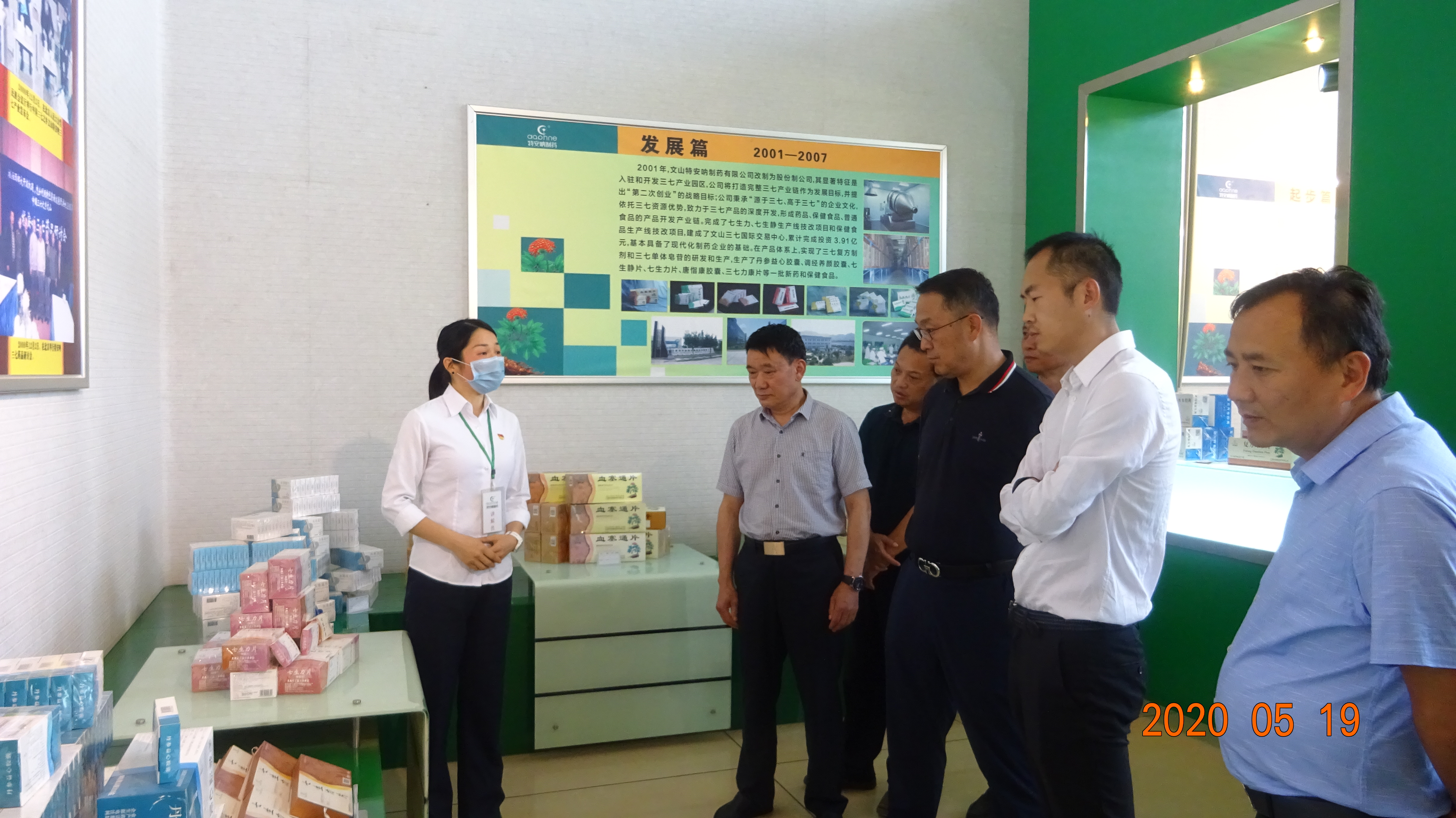 文山市委書記李永忠一行來到特安吶公司展示廳,特安吶公司總經(jīng)理嚴野等領導在展示廳迎接。嚴總向李書記介紹了公司的創(chuàng)業(yè)歷程及產(chǎn)品情況,公司從租賃手工作坊生產(chǎn)到擁有占地200余畝、16條生產(chǎn)線的現(xiàn)代化生產(chǎn)基地,主打產(chǎn)品從頭痛粉、安乃近片到血塞通片、七生力片、七生靜片等三七系列精深加工產(chǎn)品的轉變,構建了“產(chǎn)品研發(fā)基地、三七GAP種植基地、中藥材加工基地、產(chǎn)品生產(chǎn)基地、物流倉儲基地”和“三七國際交易中心、商務服務中心、物資配套服務中心”為平臺的三七產(chǎn)業(yè)鏈。今年新冠肺炎疫情發(fā)生以來,公司生產(chǎn)經(jīng)營受到較大影響,但公司沒有等、靠、要,而是積極開展自救,做好疫情防控,積極申請復工復產(chǎn),現(xiàn)生產(chǎn)經(jīng)營逐步恢復正常。李書記在聽取匯報后指出,特安吶公司是文山三七產(chǎn)業(yè)的龍頭企業(yè),希望公司再接再厲、再創(chuàng)輝煌。