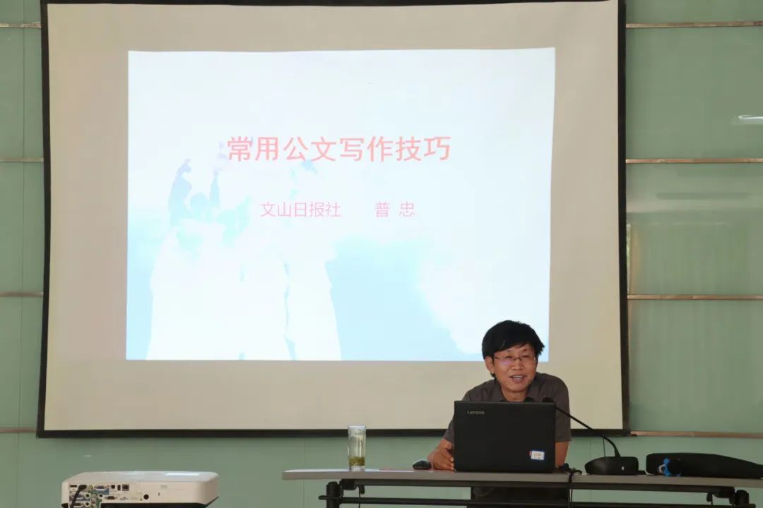 為進(jìn)一步提升公司各層級(jí)管理人員公文寫作水平、拓寬寫作思路、提高寫作效率,著力鍛造一支提筆能寫、問(wèn)策能對(duì)、壓擔(dān)能挑、團(tuán)結(jié)協(xié)作的復(fù)合型隊(duì)伍。近日,特安吶公司組織開展一期公文寫作知識(shí)專題培訓(xùn),培訓(xùn)邀請(qǐng)文山日?qǐng)?bào)社副主編普忠老師授課,公司領(lǐng)導(dǎo)班子、職能部門人員、車間兼職宣傳員共計(jì)70余人參加。