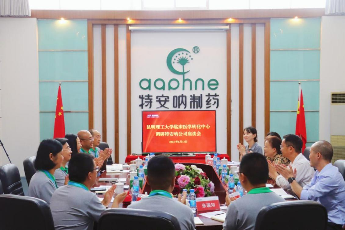 云南省第一人民醫(yī)院血液科主任楊同華、副主任胡芃,昆明理工大學(xué)王福平博士、邵瑞飛博士、徐嘉昕博士,特安吶公司副總經(jīng)理鄭傳云、唐繼榮,總經(jīng)理助理宣光玉,公司綜合辦公室、技術(shù)開發(fā)部、質(zhì)量管理部、生產(chǎn)管理部負(fù)責(zé)人參加座談。