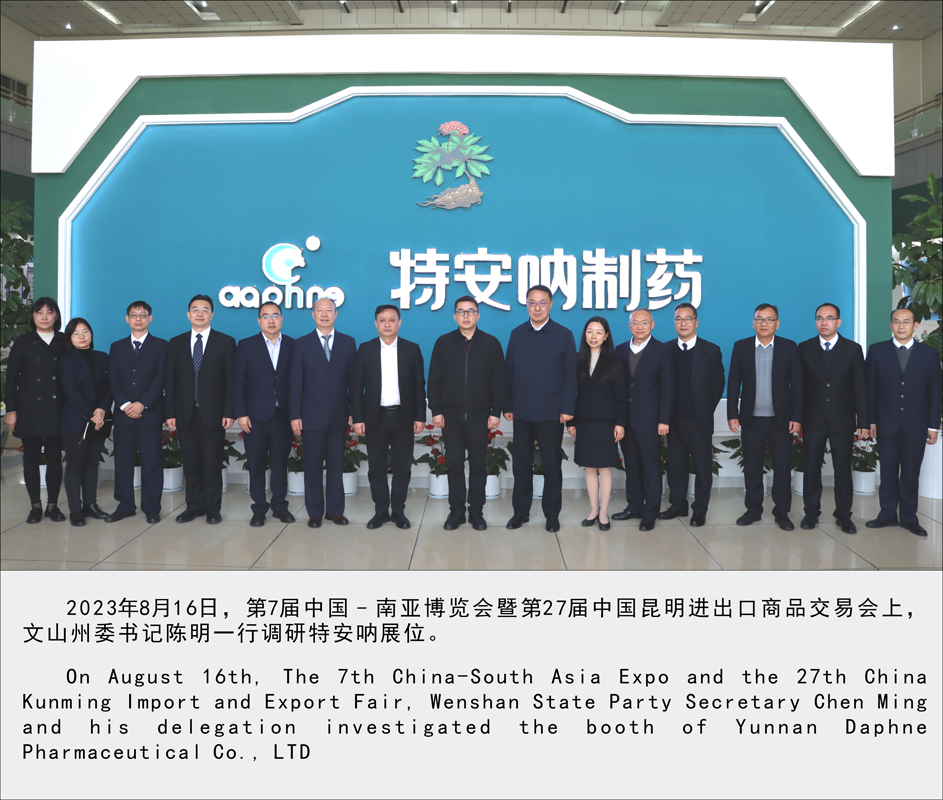 2023年8月16日,第7屆中國-南亞博覽會暨第27屆中國昆明進(jìn)出口商品交易會上, 文山州委書記陳明一行調(diào)研特安吶展位。