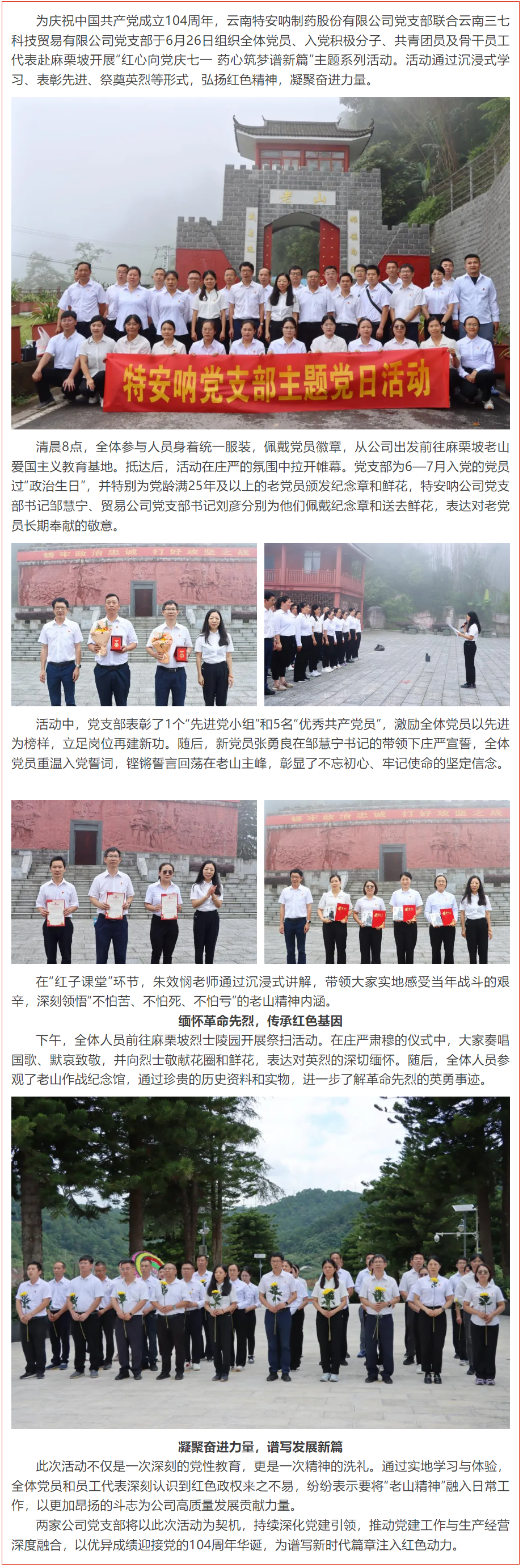 紅心向黨慶七一,藥心筑夢譜新篇——特安吶公司黨支部、貿(mào)易公司黨支部聯(lián)合開展“七一”...